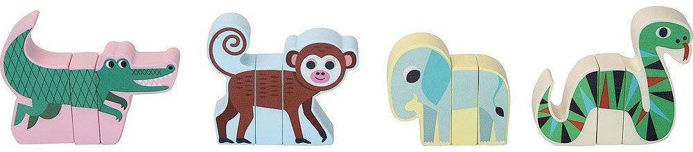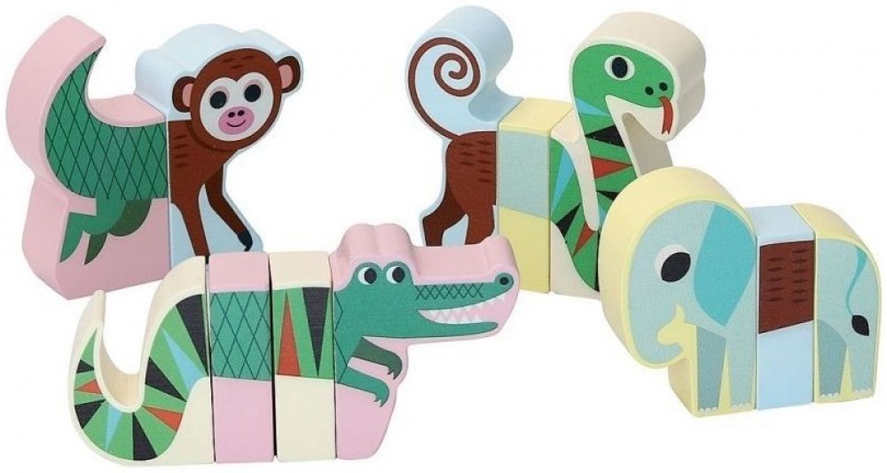 Sada obsahuje čtyři zvířátka z jungle - slona, krokodýla, opičku a hada.