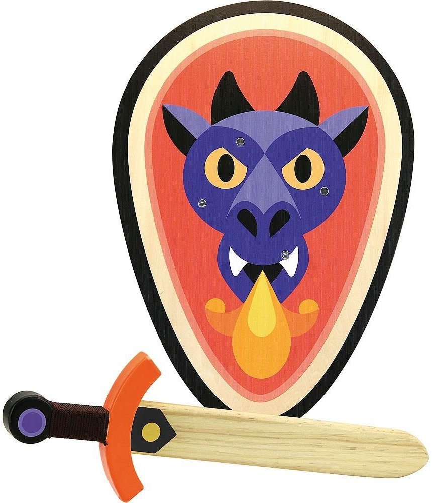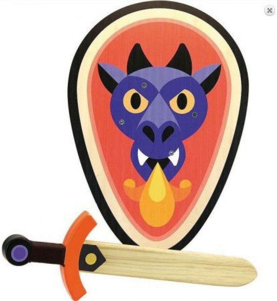 Dřevěný štít a meč pro rytíře, nebo panoše. Bojujte jako lítý drak! Hračky Vilac mají značku francouzské agentury ADEME, jsou vyráběny bez plýtvání energiemi ekologicky, šetrně k životnímu prostředí.