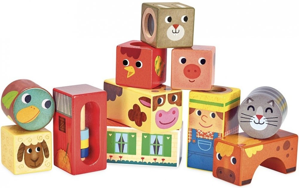 Jedenáct dřevěných zvukových kostek s motivem zvířátek z farmy. S těmito kostkami si děti procvičí motoriku i zručnost a zároveň budou objevovat zvuky. Pro děti velmi poutavá hračka.