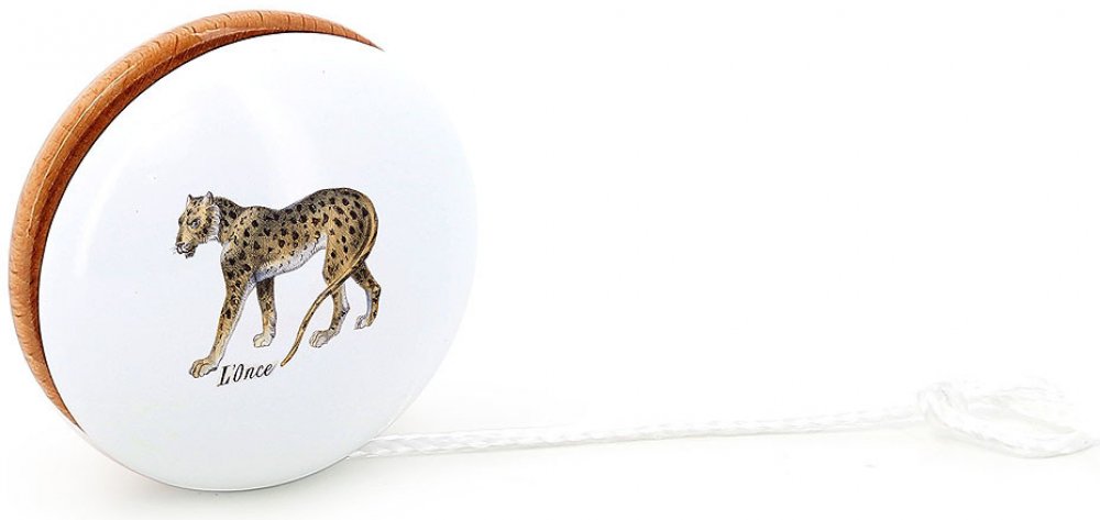 Jojo z lakovaného dřeva s ilustrací levharta sněžného.
