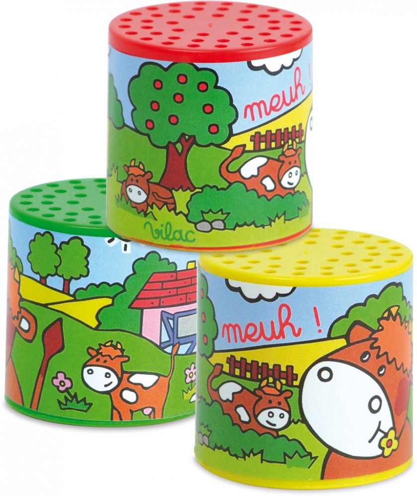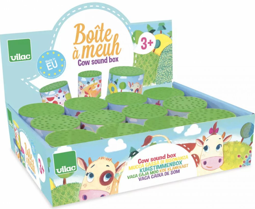 Vilac Plechovky se zvukem kravičky, který mohou naučit vaše nejmenší jaké zvuky vydávají jednotlivá zvířátka.