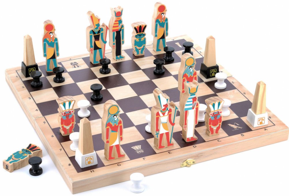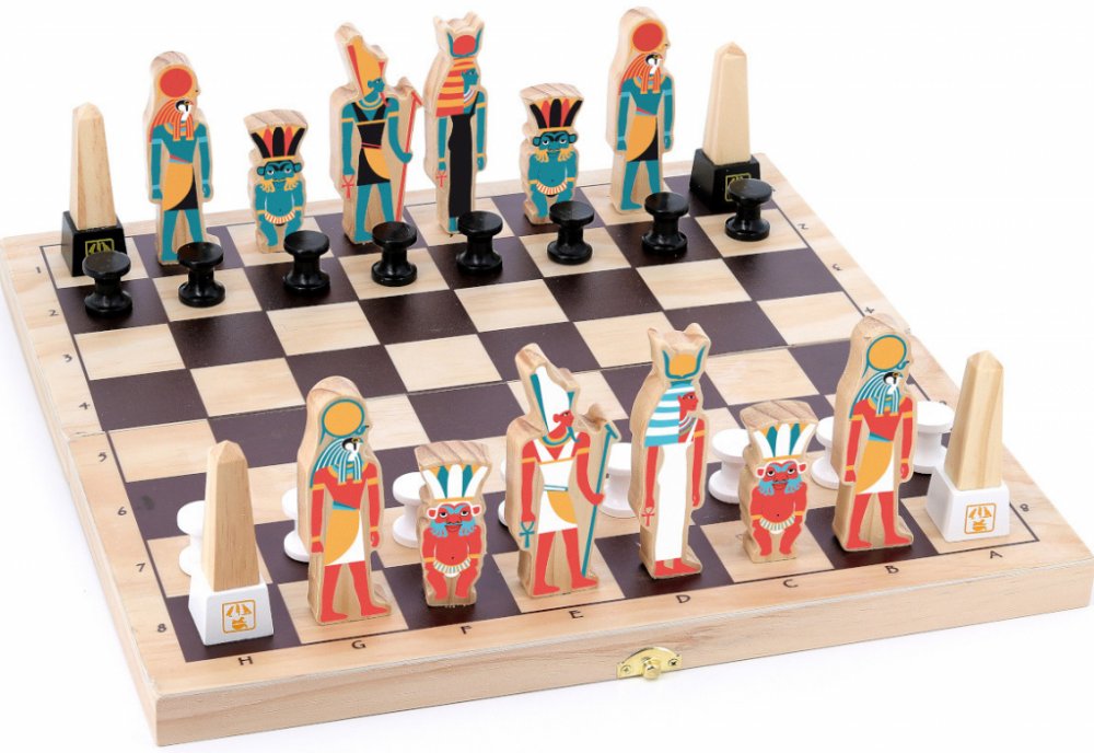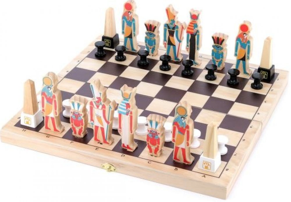 Máte zálibu ve starověkém Egyptě? Vyzkoušejte šachy s figurkami v podobě starověkých artefaktů a ikon inspirovaných expozicí egyptských památek muzea Louvre. Atraktivní zpracování zaujme a upoutá pozornost, kterou můžete zábavně zúročit, rozvíjet soustředění a strategické myšlení. Souprava se stane nepřehlédnutelnou ozdobou poliček a stolků v dětských pokojích, klubovnách a hernách. Hrací plocha je skládací, hru proto lze prakticky uklidit a může Vás provázet na cestách. Hlavní vlastnosti: hrací deska a 32 figurek praktické a skladné balení jedinečný design a zpracování Výrobce Vilac se může pyšnit úzkou spoluprací s francouzskou agenturou ADEME. Takto označené hračky jsou vyráběny s ohledy k životnímu prostředí, ekologicky, udržitelně a s využitím obnovitelných zdrojů.