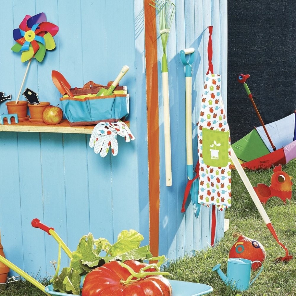 Nářadí je vyrobeno z masivního dřeva a kovu, velikostně tak akorát pro dětské ruce. Pojďme na zahradu!
