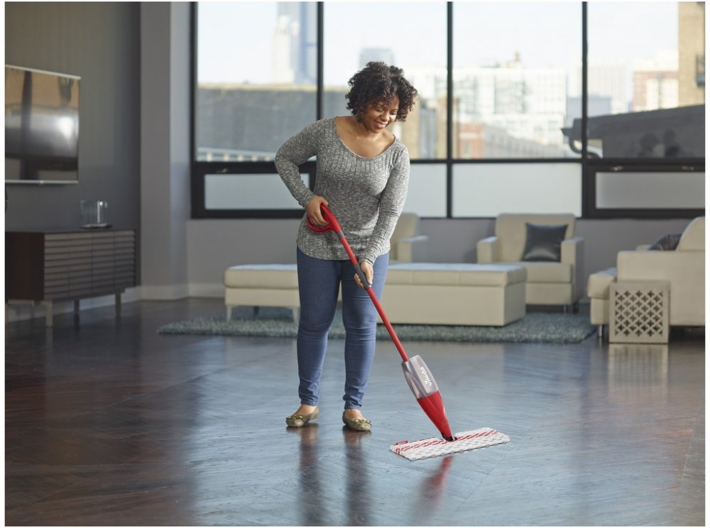 Stačí přidat vodu a - pokud chcete - několik kapek vašeho oblíbeného čisticího prostředku do odnímatelné nádržky na vodu. Stiskněte spoušť na rukojeti. Rozprašovací tryska uvolňuje jemnou mlhu, která vám umožní podlahu vytřít namokro.