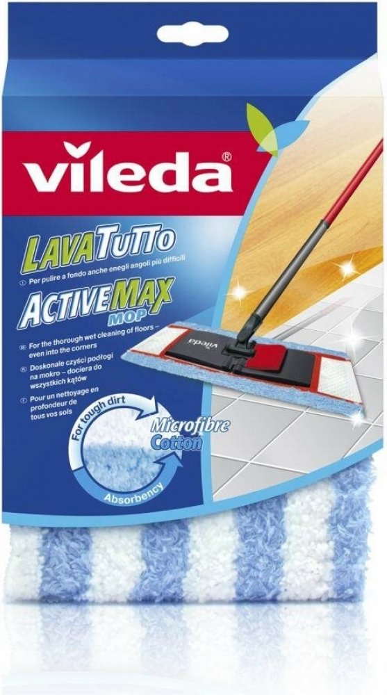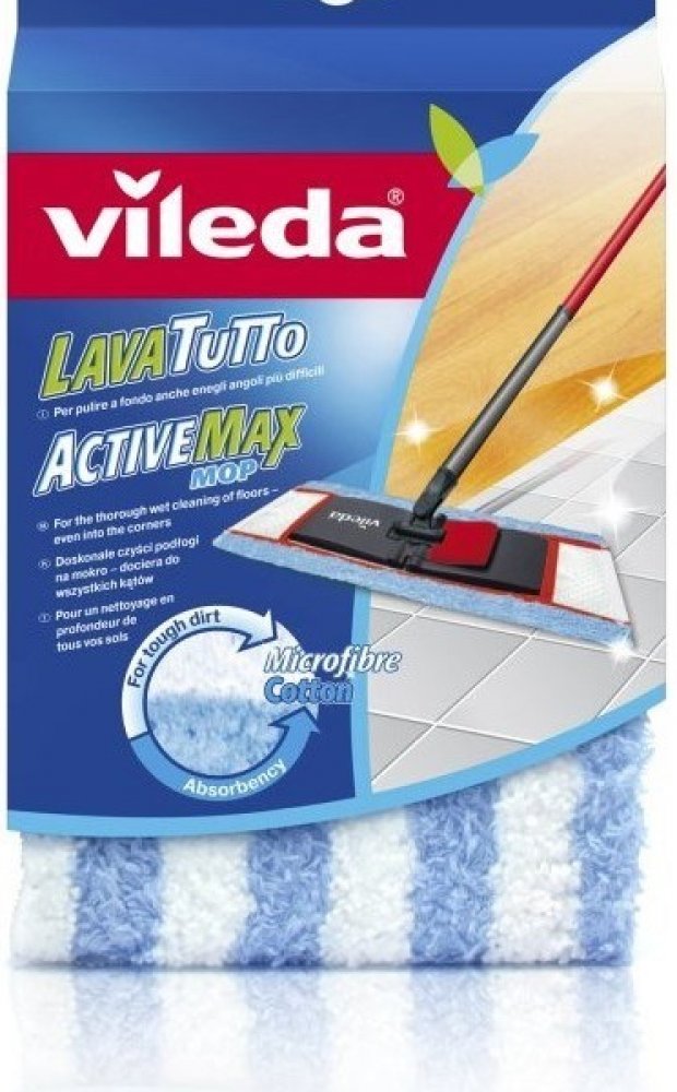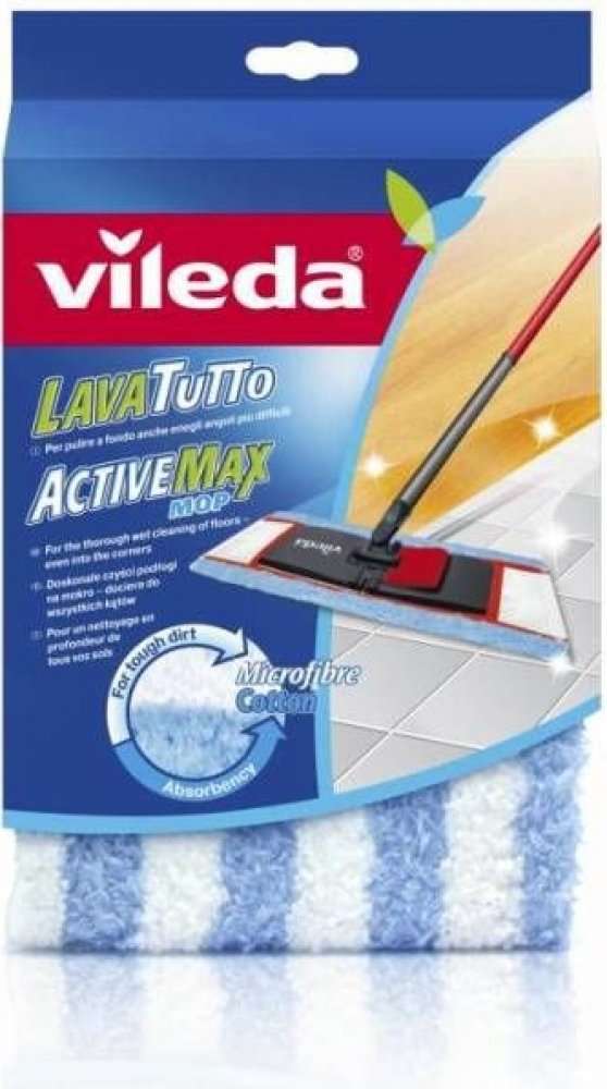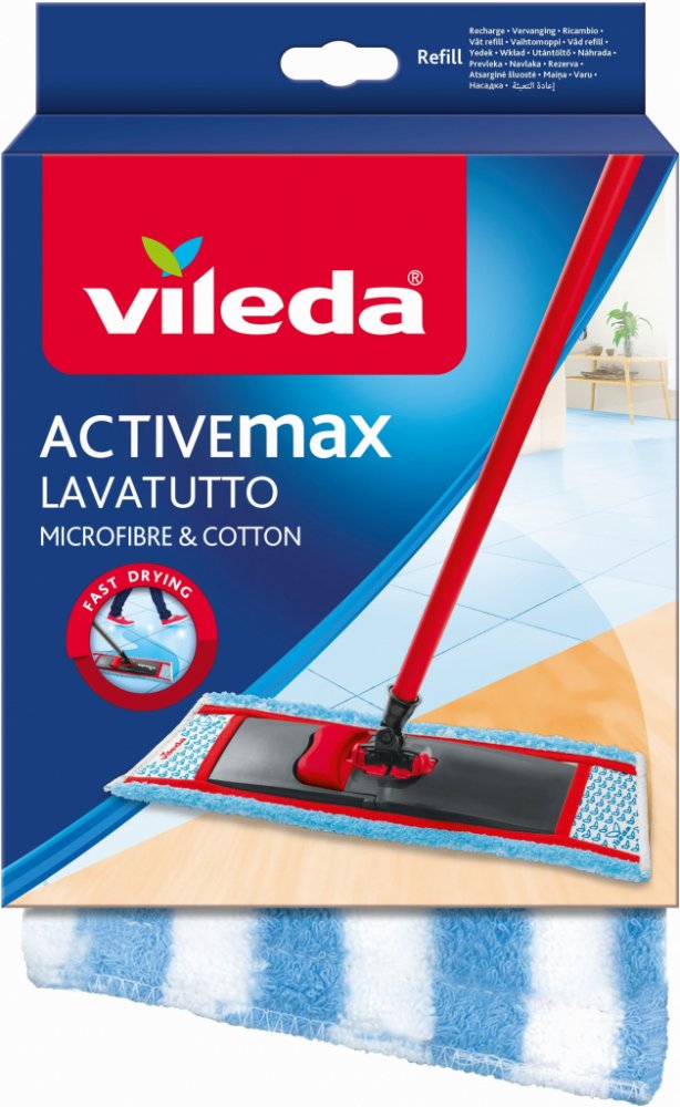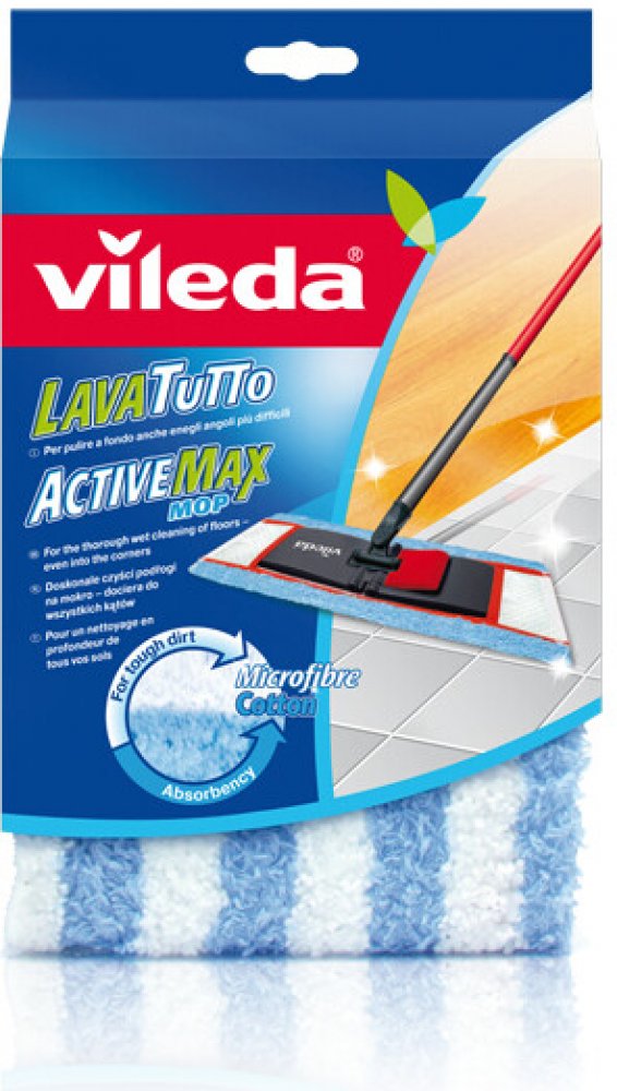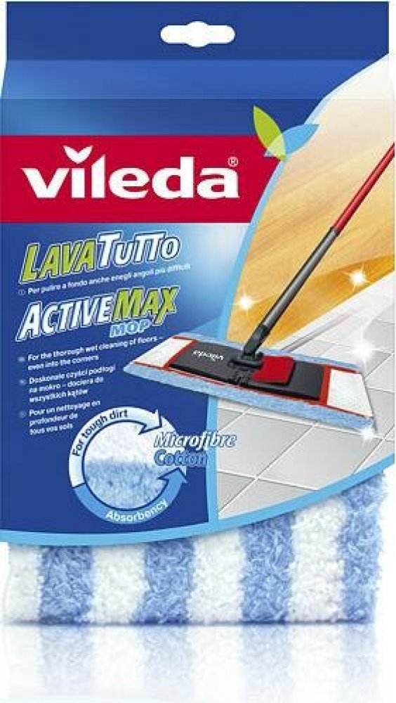 Přednosti produktu 1. Absorpce vody Bílé vlákna na mycím návleku jsou z mikrovláken, takže jsou perfektní pro odstranění odolných nečistot, zatímco modré vlákna jsou vyrobeny z bavlněných vláken a nabízejí fantastickou savost pro lepší výsledek čištění. 2. Tvar lichoběžníku Lichoběežníkový tvar tohoto mopu se skvěle hodí na úklid schodišť nebo čištění v rozích. 3. Aktivní vlákno Aktivní vlákno zajišťuje snadný a rychlý úklid i v rozích. Ideální pro větší plochy. Vhodný pro plovoucí podlahu a dlažbu.