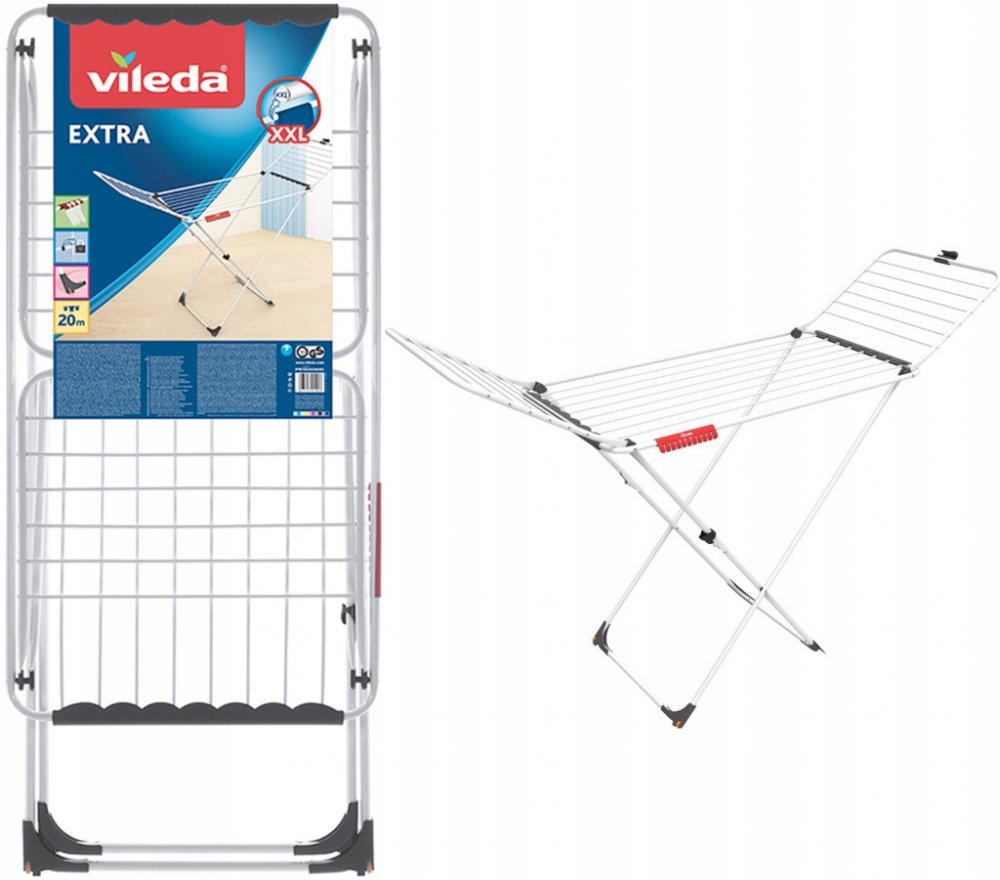 Vileda Extra sušák je perfektní sušák pro pohodlné sušení prádla díky silným hliníkovým drátům, které zabrání mačkání prádla a pomohou tak urychlit žehlení.