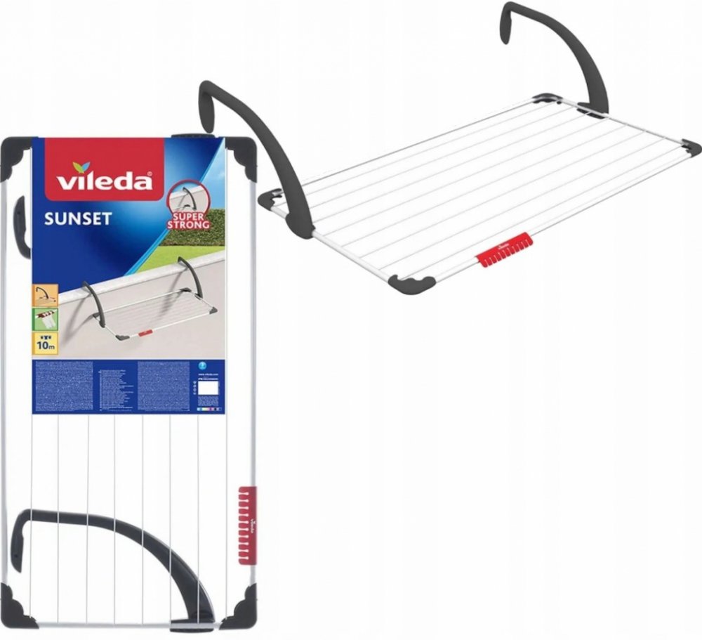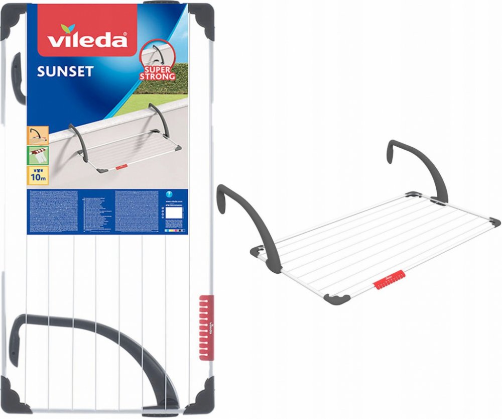 • Vileda Sunset je praktický sušák, který se pohodlně zavěšuje a vysuší vaše oblečení na balkoně.