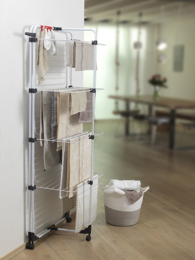 • Flexibilní čtyř-úrovňový ocelový sušák na prádlo se sušící plochou až ze 4 praček.