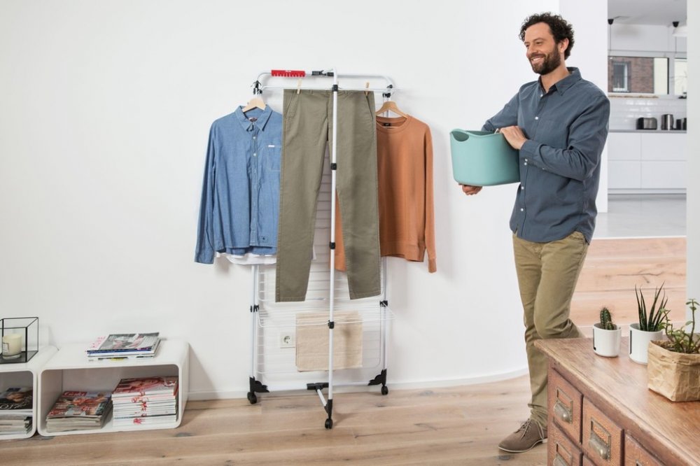 • Dodatečné sušící místo je možné získat díky držáku pro malé oděvy (jako jsou ponožky nebo spodní prádlo) a 2 věšáky pro ramínka.