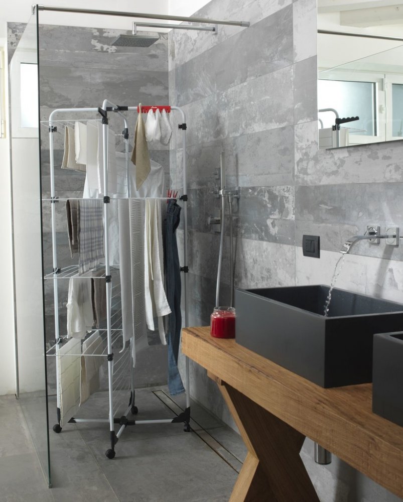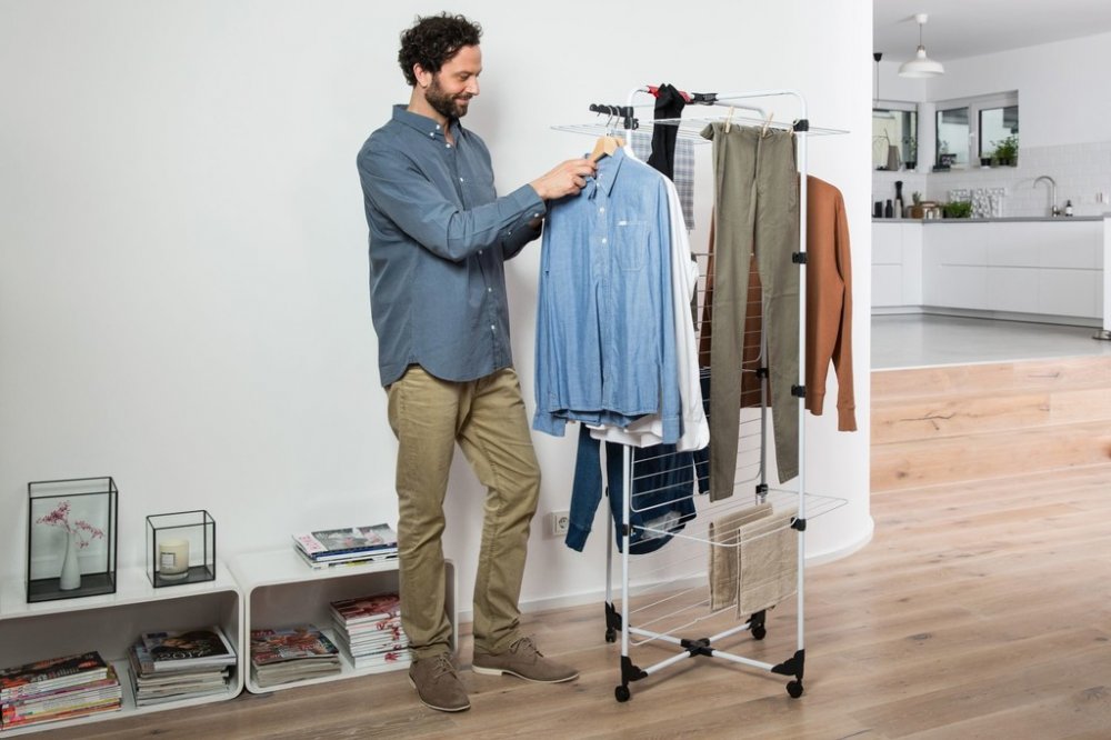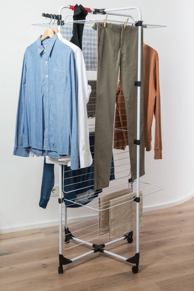 • Díky nezávislým roštům, které mohou být použity jako zcela otevřené - pro sušení dlouhých oděvů a delikátního prádla - nebo polo-složené a přisunuté např. u stěny nebo radiátoru, pokud máte malé množství prádla a potřebujete ušetřit místo.