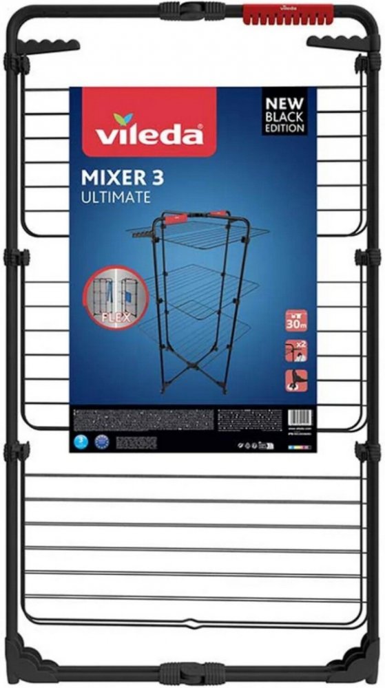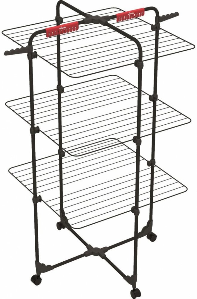 Ocelový tříúrovňový sušák na prádlo, velmi všestranný a flexibilní. Díky nezávislým roštům, kteté mohou být použity otevřeně pro např. sušení dlouhých oděvů, nebo polosloženě a přisunuté např. u radiátoru, skvěle šetří místo. Dodatečné sušící místo lze získat použitím držáku pro malé oděvy, jako jsou ponožky nebo spodní prádlo. Lze využét též 2 věšáky pro ramínka. Otočná kolečka pro snadné přemsťování. Lze kompaktně složit a skladovat. Díky speciálnímu kloubu lze využívat polovinu nebo plnou plochu sušáku. I při minimálních nárocích na prostor nabízí 30 metrů sušící plochy. Má 8 nezávislých roštů vhodných pro sušení dlouhých oděvů nebo delikátního prádla a s držákem pro malé oděvy, 2 věšáky pro ramínka a otočnými kolečky pro snadné přemisťování. Technické parametry: rozměr rozložený (š