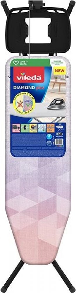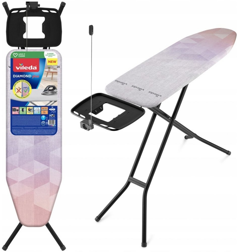 Je vždy připraveno k použití a najdete v něm oporu kdykoli se musíte postavit k žehlení. Žehlicí prkno VILEDA Diamond Plus je velmi prakticky pojaté a velmi stabilní s šířkou plochy na žehlení 38 cm. Další z rozměrů 120 cm navíc naznačuje, že budete mít dost místa a pohodlí při žehlení poněkud rozměrnějších látek. Žehlicí prkno má konstrukci, která je velmi dobře stabilizovaná a drží pevně, nehrozí proto převrácení při jemném drcnutí. Nastavitelná výška je bez debat zásadní funkcí a je tedy možné výšku nastavit dle libosti. Jistě jednou z hlavních součástí bude držák žehličky, který zajistí bezpečné odkládání. Konkurenční výhodou tohoto prkna je zásuvka s kabelem, do které se žehlička zapojí snáz, než do zásuvky. Základní parametry žehlicího prkna VILEDA Diamond Plus K prknu náleží držák na žehličku zrovna jako zásuvka s kabelem Složitelná konstrukce u které není problém nastavit výšku Rychlé a bezpečné rozestavování rámu Jeho šířka je 38 cm a délka prkna je 120 cm