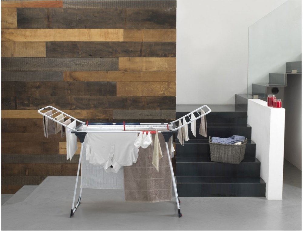 * Ocelové nohy poskytnou větší stabilitu a robustnost; jejich možné fixní upevnění zabrání jakémukoli náhodnému uzavření, i když se sušák přemísťuje.