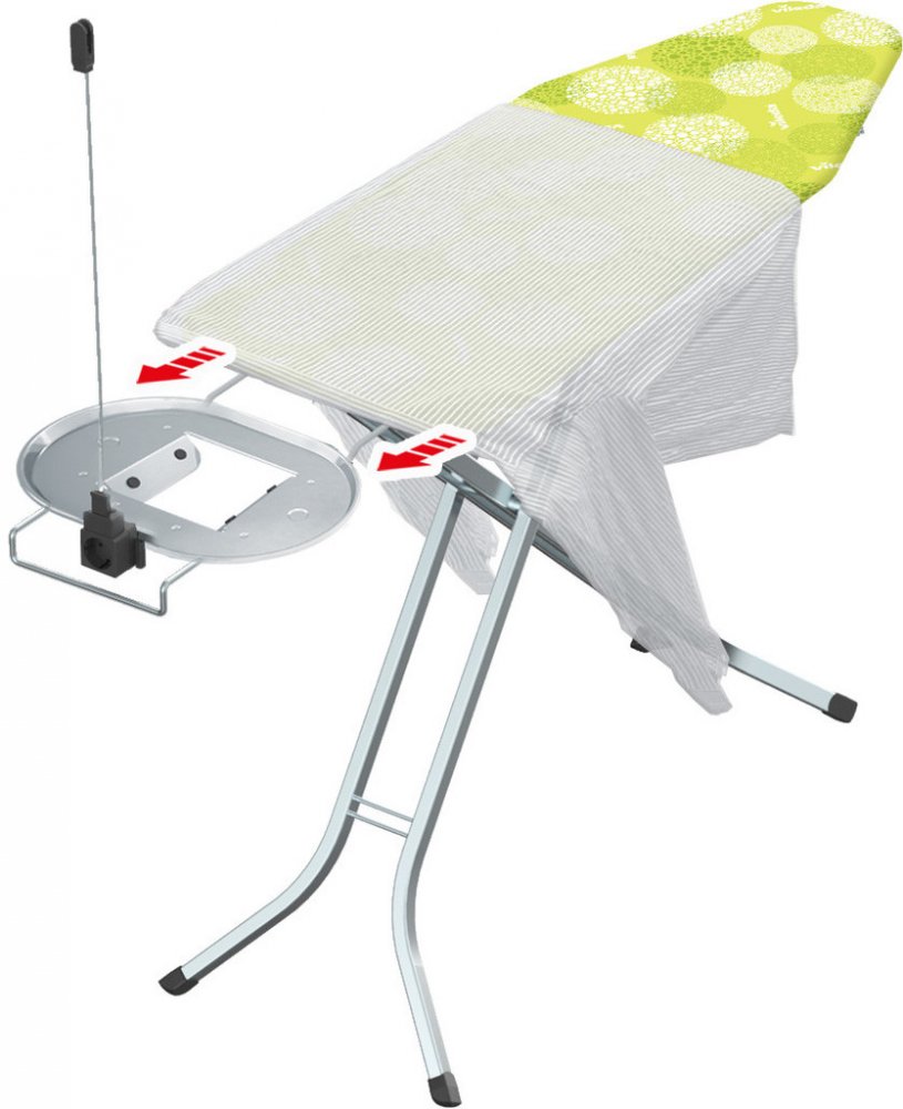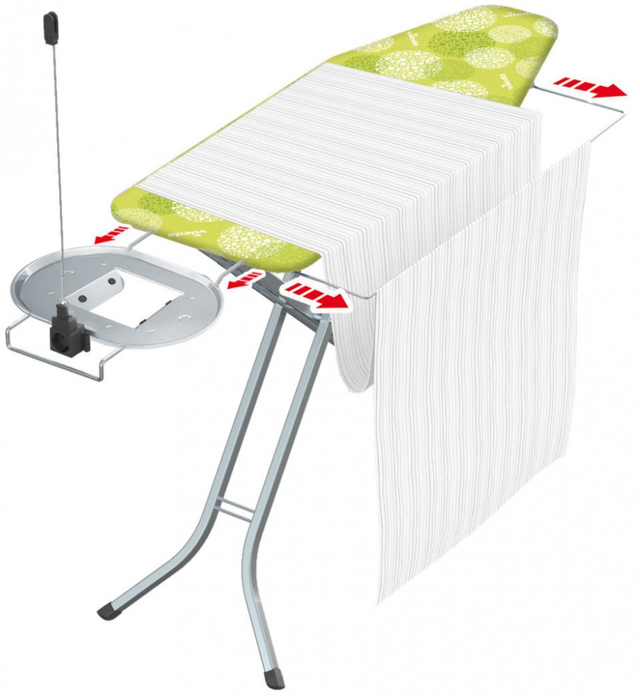 Rozměr odkládací plochy: 40 × 28 cm, rozměr otvoru na žehličku: 14 cm.