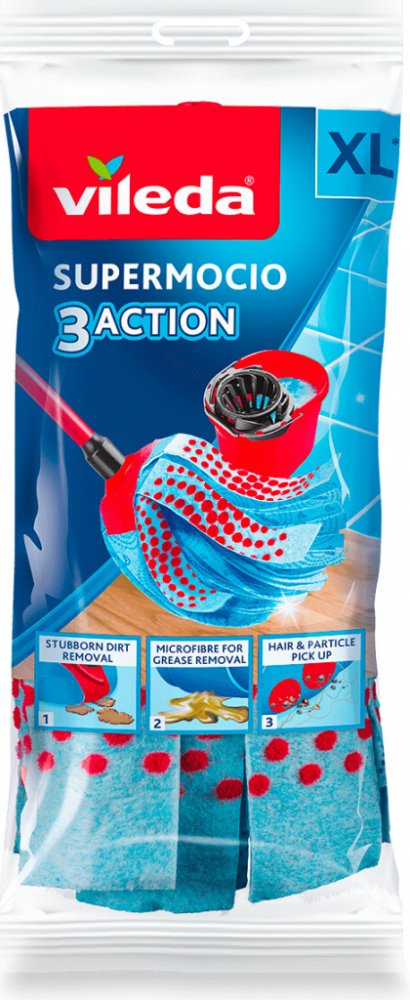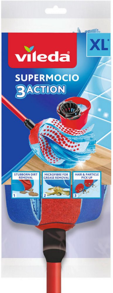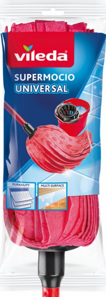 Odolný, ale flexibilní mop Vileda SuperMocio Universal je velmi savý. Je velmi účinný a snadno si poradí s každodenním nepořádkem, jako je prach a jiné nečistoty. Speciálně tvarovaná hlavice je skvělá pro úklid v rozích. Součástí mopu není kbelík.