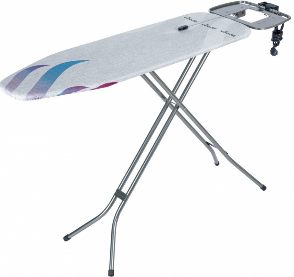Vileda. Délka - 120 cm. Šířka - 38 cm. Výška - 96 cm. Barva - červená, šedá. Složení látky - Bavlna. Parovodná plocha žehlicího prkna je vyrobena z lisovaného ocelového plechu.Základním materiálem žehlicího prkna je slitina kovů. Remo materiál - kov. S policí - Ano. Nastavitelná výška - Ano. Další informace - Plocha žehlící plochy 120 cm x 38 cm;.