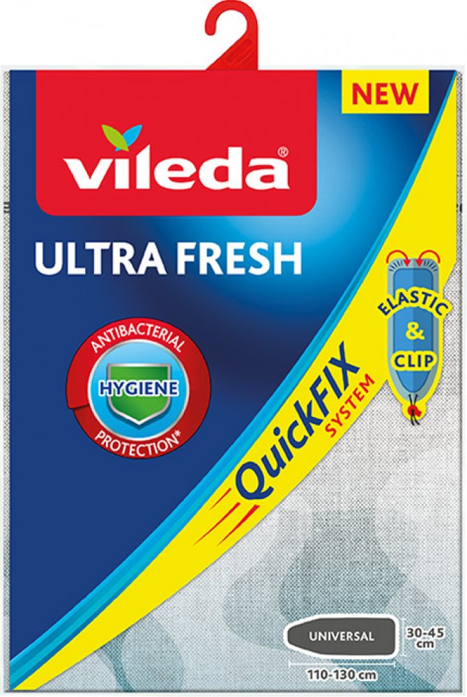 Univerzální potah na žehlicí prkno s antibakteriální ochranou pro extra hygienu. Skládá se ze dvou vrstev - antibakteriální pěny a antibakteriálního bavlněného potahu. Povrch potahu tak znemožňuje bakteriím přežívat a dále se množit. Potah je vhodný pro všechna žehlicí prkna s délkou 110 - 130 cm a šířkou 30 - 45 cm. Žehlení prádla na tomto potahu je pohodlné a navíc hygienické.
