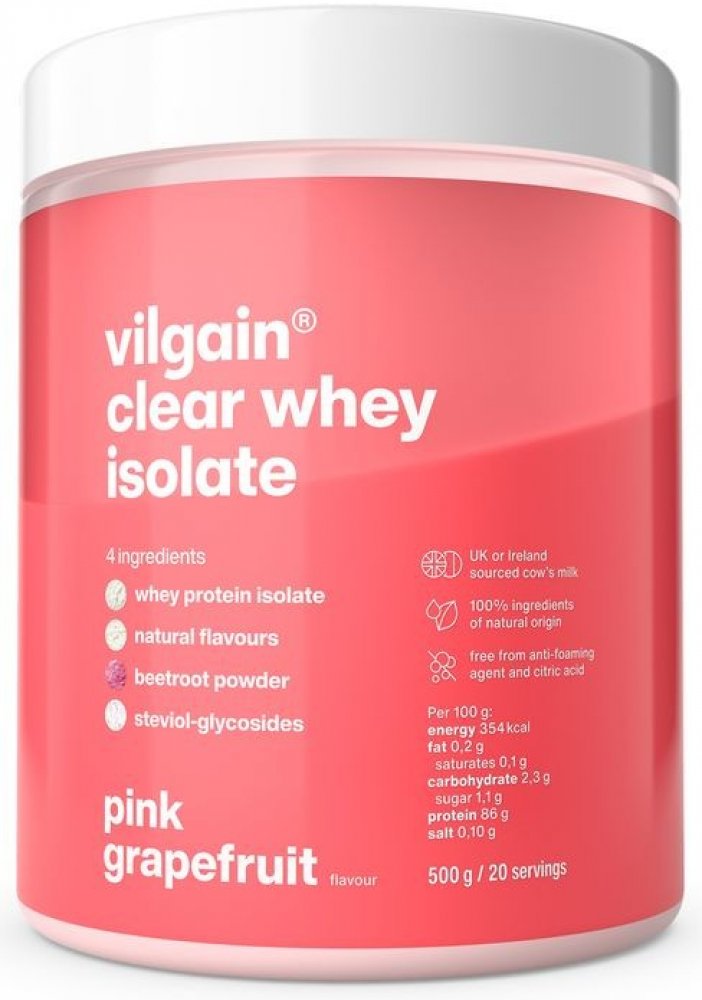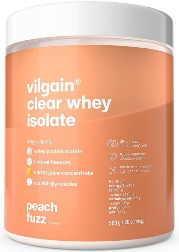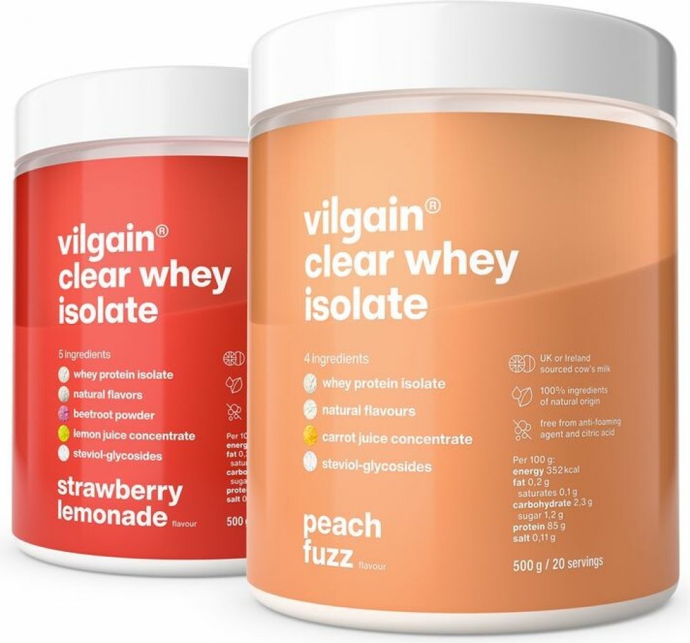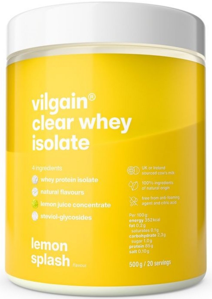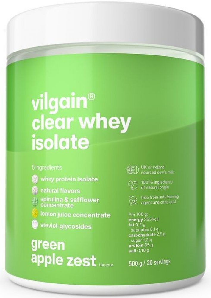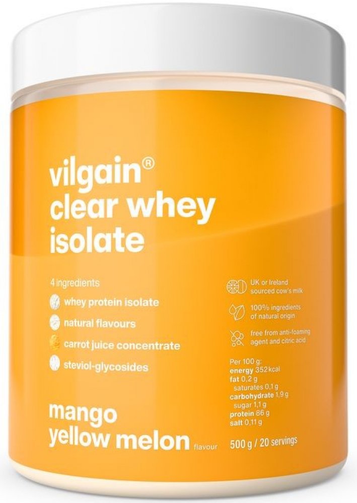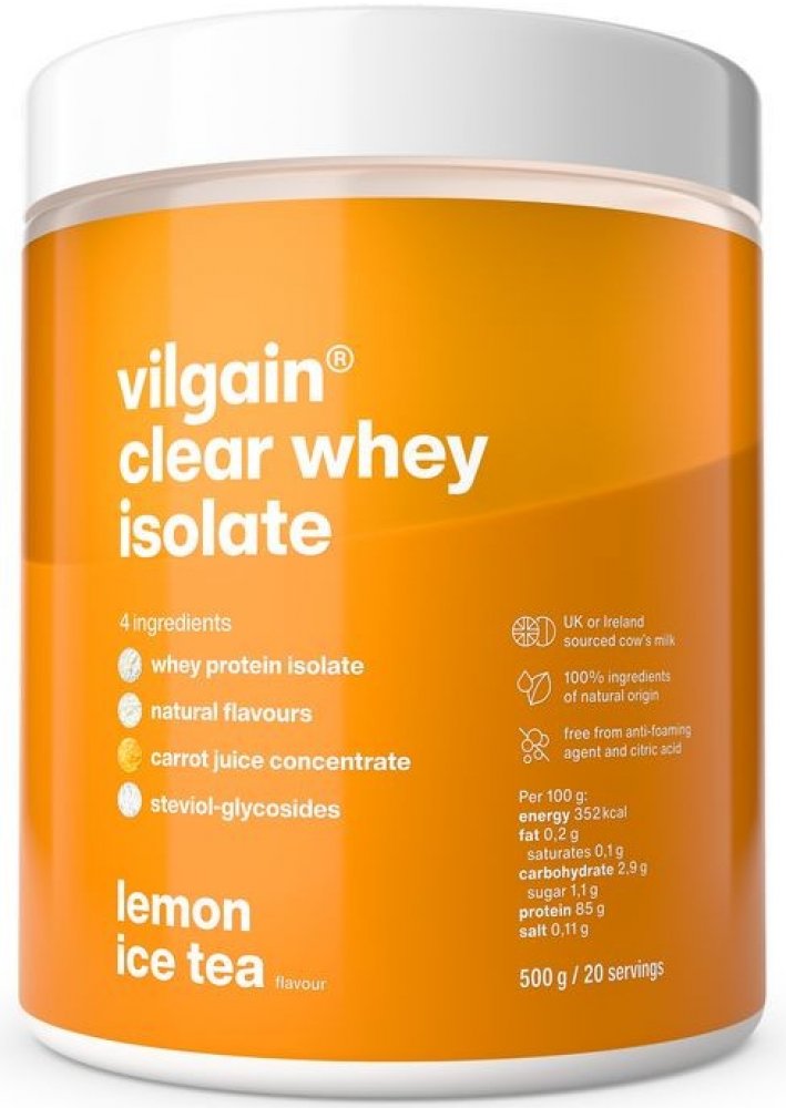 Vilgain Clear Whey Isolate je 98 % clear syrovátkový izolát slazený přírodními steviol‑glykosidy. Pít se dá kdykoliv, ale nejlépe se ho vychutnáš jako pořádně vychlazený letní drink, bez mléčné struktury a s chutí ovocné limonády.