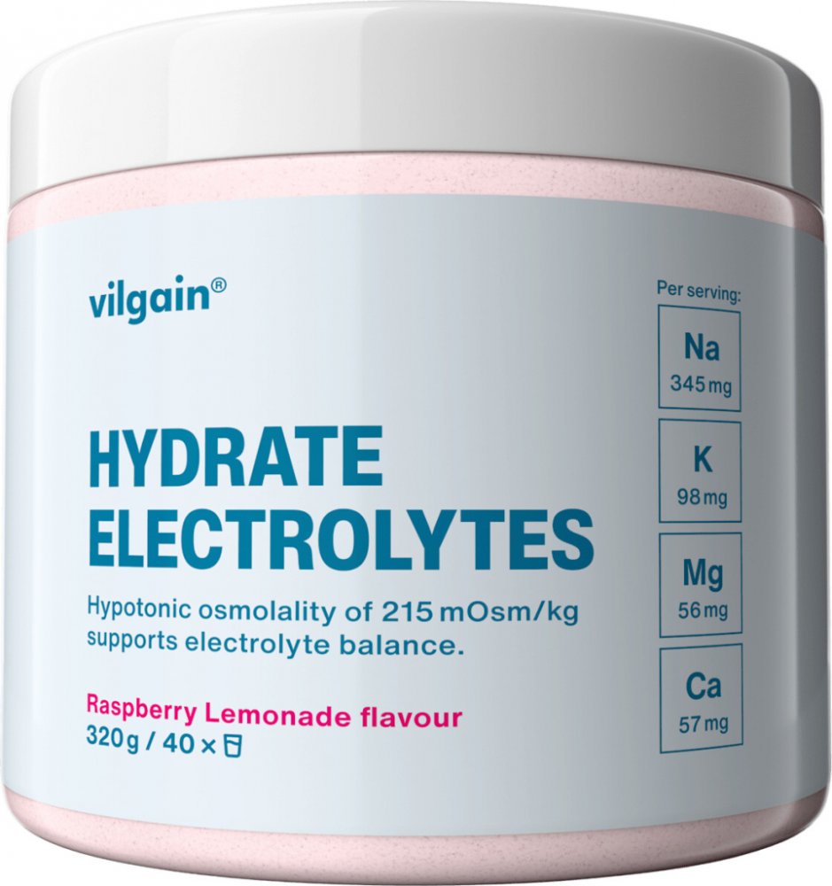 Iontový nápoj Vilgain ElektrolytyOkurka a limetka, 320 gIontový nápoj Vilgain doplňuje hydrataci během tréninku a podporuje elektrolytickou rovnováhu. Obsahuje hořčík, který přispívá k normální činnosti svalů a psychické činnosti. Iontový nápoj Vilgain ve formě sypké směsi je navíc bez umělých sladidel, je slazen pouze přírodní stévií. Nápoj pro každodenní hydrataciHypotonický drink Vilgain s elektrolyty má lahodnou ovocnou chuť. Nápoj podporuje optimální hydrataci a díky obsahu hořčíku i elektrolytickou rovnováhu. Napomáhá tělu doplnit sodík, draslík, hořčík a vápník ve snadno vstřebatelných formách. Dodává hydrataci před a během fyzické námahy, v létě nebo třeba po párty. Iontový nápoj Vilgain má nízkou osmolalitu, 215 mOsm/kg, díky čemuž zajišťuje rychlejší vstřebávání vody organismem. Obsahuje navíc efektivní poměr glukózy a sodíku pro účinnou rehydrataci. Klíčové vlastnosti iontového nápoje Vilgain elektrolyty, okurka a limetka, 320 gIontový nápoj Vilgain ve formě sypké...