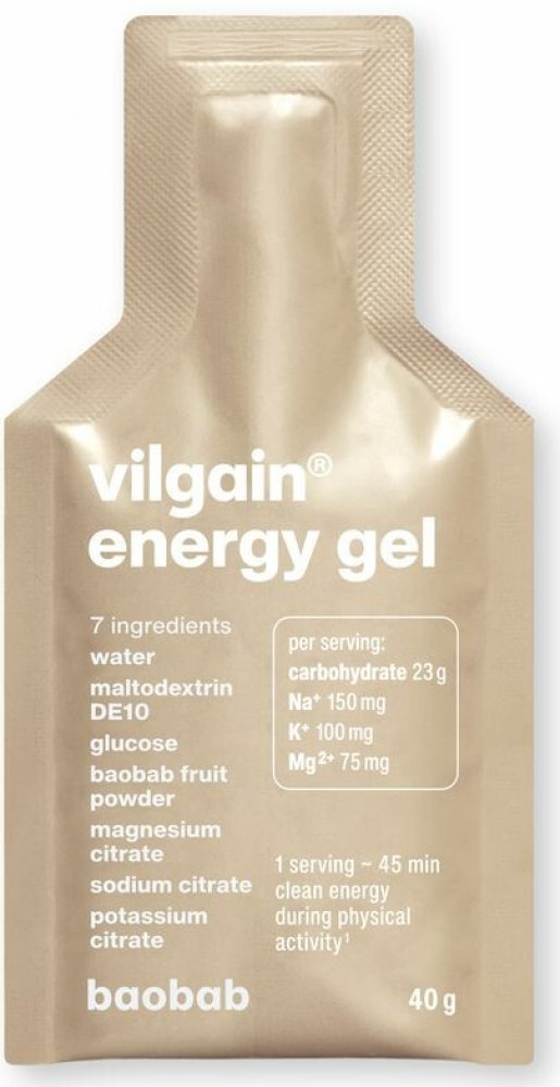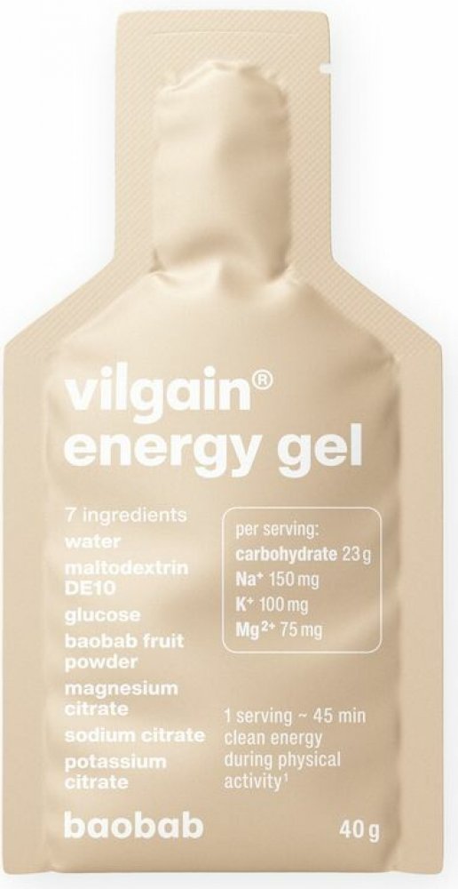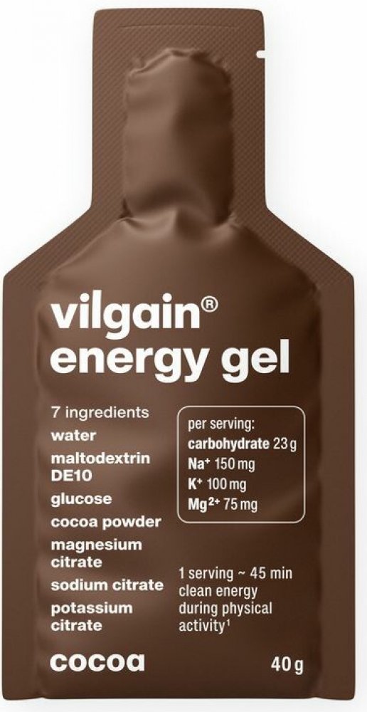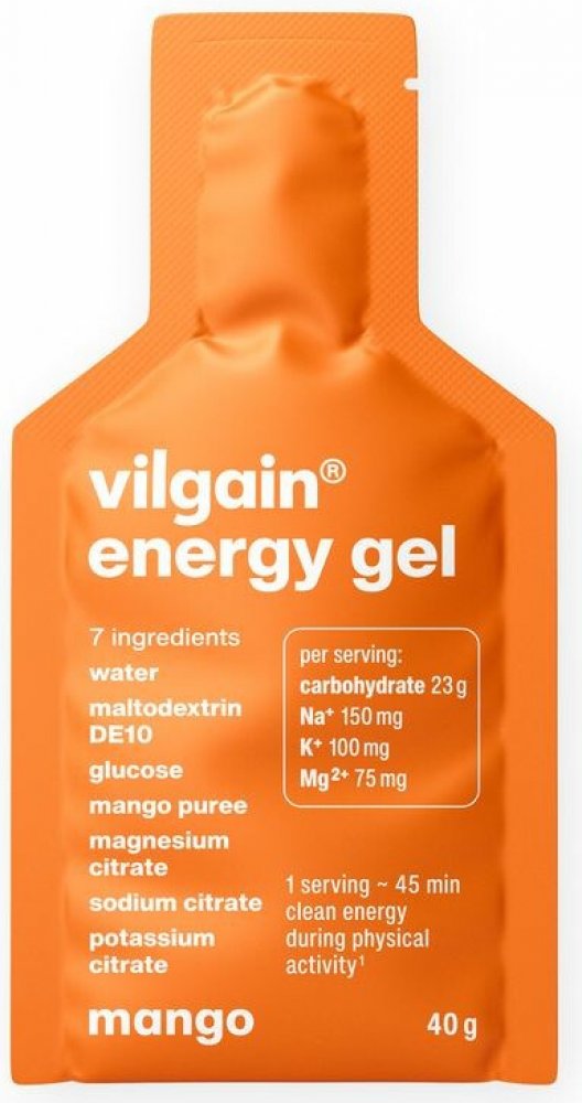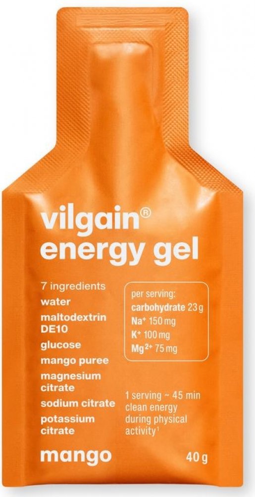 Vilgain 40 g s 20-35 g sacharidů 96 kcal 12 g Na 150 mg; K 100 mg; Mg 75 mg mg 1 gel 15 min before, then 1 every 45 min 0.03 g