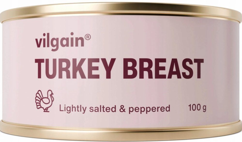 Krůtí prsa ve vlastní šťávě Vilgain100 g Masová konzerva Turkey Breast od firmy Vilgain obsahuje pouze libové kusy lahodného krůtího masa z ověřených chovů na Slovensku. Kousky masa s trochou soli a pepře jsou připraveny k okamžitému použití. Vynikající budou v sendvičích a v salátech nebo klidně i na pizze. Kousky krůtího masa můžete použít i jako základ pro náročnější recepty vyžadující tepelnou úpravu. Řada receptů, kde můžete čarovat s krůtími prsy ve vlastní šťávě od firmy Vilgain, je opravdu dlouhá. Velké kusy libového masa ve vlastní šťávě se špetkou soli a pepře, to jsou krůtí prsa od firmy Vilgain. Jsou skvělé na okamžitou přípravu sendvičů a nebo jako základ teplé kuchyně. Klíčové vlastnosti krůtích prsou ve vlastní šťávě VilgainKrůtí prsa Vilgain jsou ve vlastní šťávěLehce osolená a opepřenáObsahují bílkovinyVelké kusy libového masaZ ověřených chovů na SlovenskuBez umělých konzervantůVýživové hodnoty na 100 g Energetická hodnota...