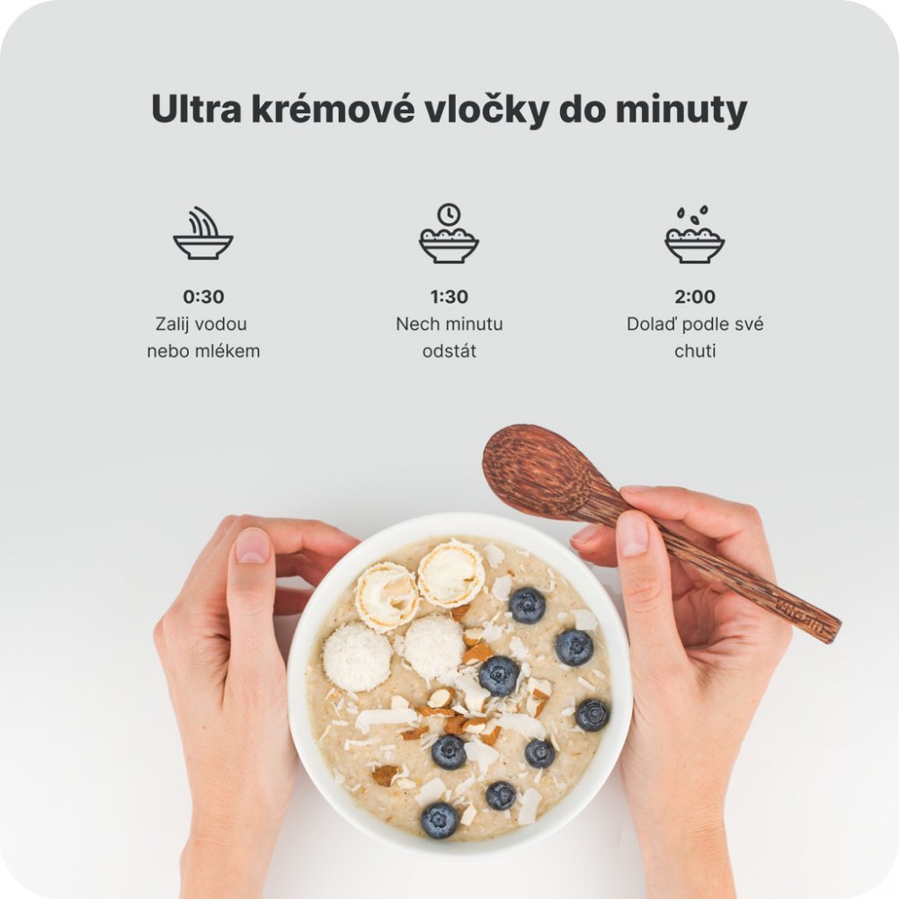 Rychlá příprava do 2 minut ✓ Ultra jemná a krémová textura ✓ 25 g bílkovin na porci ✓ 100% přírodní složení ✓ Bez lepku ✓ 5+ neodolatelných příchutí ✓