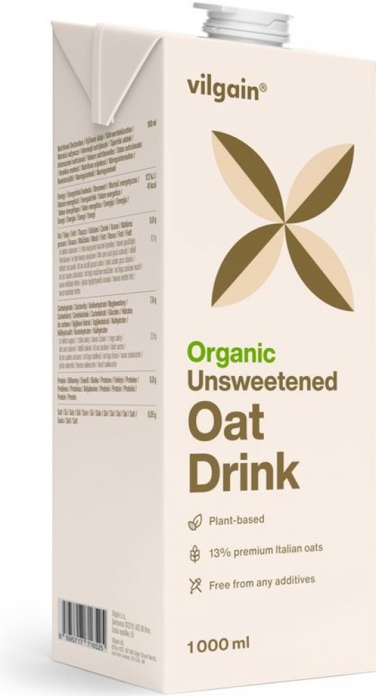 Vilgain Organic Oat Drink1000 mlRostlinný nápoj Vilgain Organic Oat Drink je ideální alternativou mléka pro osoby s intolerancí na laktózu či alergií na mléčné bílkoviny. Vyrobený je pouze z vody a ovsa pocházejícího z kontrolovaného ekologického zemědělství. Do kávy, samotný i na pečeníRostlinný nápoj Vilgain Organic Oat Drink můžete pít jen tak samotný, přidat ho do kávových nápojů, jako je capp...