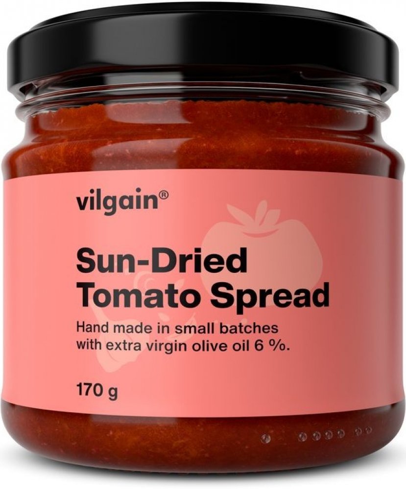 Vilgain Sun‑Dried Tomato Spread je must‑have pro všechny milovníky středomořských chutí. Tato luxusní pomazánka z rajčat sušených na slunci přináší bohatou a intenzivní chuť, která v sobě spojuje sladkost rajčat, slanost kaparů a jemnost extra panenského olivového oleje.