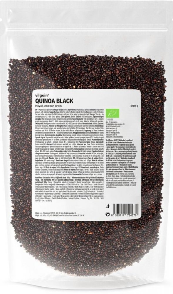 Vilgain Quinoa černá neboli Merlík čilský je bezlepková pseudoobilovina s jemně nasládlou chutí. Skvěle chutná naslano i nasladko.