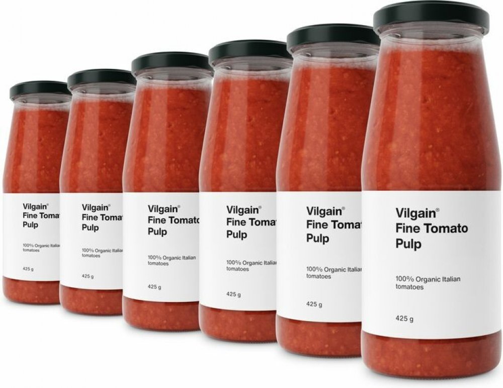 Vilgain Rajčatové pyré není žádný rajčatový koncentrát ani voda dochucená rajčatovým aroma. Naše pyré vyrábíme výhradně z celých rajčat.