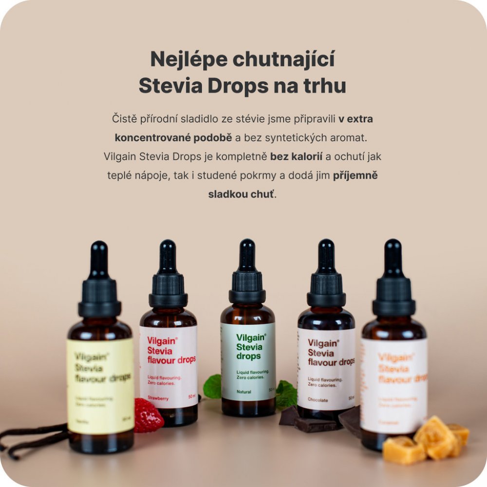 Čistě přírodní sladidlo ze stévie jsme připravili v extra koncentrované podobě a bez syntetických aromat. Vilgain Stevia Drops ochutí jak teplé nápoje, tak i studené pokrmy, a to bez známky nahořklé chuti na konci.