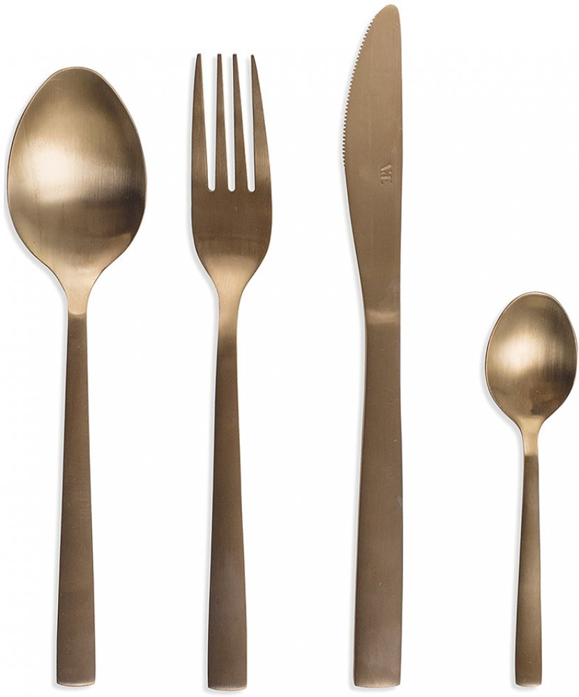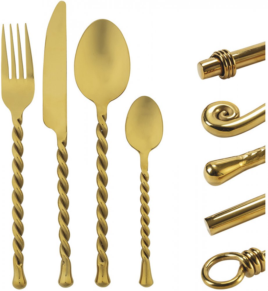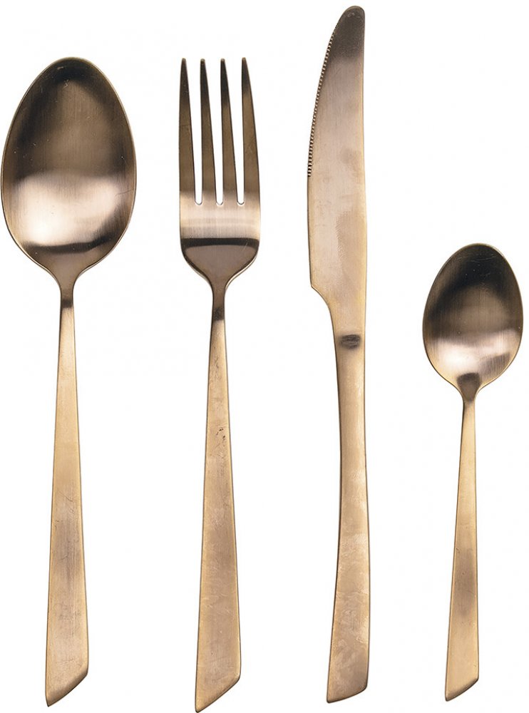Sada designových příborů Drop 24 kusů z leštěné nerezové oceli a v měděné barvě. Tato sada příborů se hodí ke každému pěkně zdobenému stolu. Design pro moderní i retro bydlení.