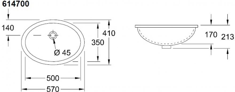 Villeroy & Boch keramika zápustné 570 mm 410 mm zápustné 213 mm bílé