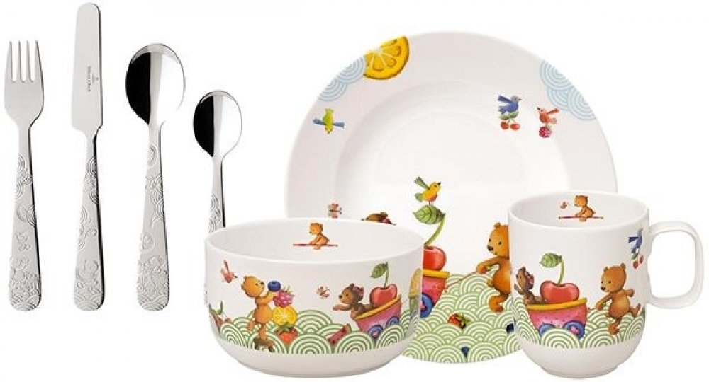 Chtěli byste své dítko při osvojování jídelních dovedností podpořit v samostatnosti? V tom případě se vám bude hodit dětská jídelní sada Villeroy & Boch. V nabízené sadě se nachází miska, talíř, vidlička, hrnek a lžíce splňující potřeby malých strávníků. Dětská jídelní souprava byla zhotovena z porcelánu a je optimální pro větší děti, které dokáží jíst samostatně. Zajímavý vzhled doplňuje vícebare...