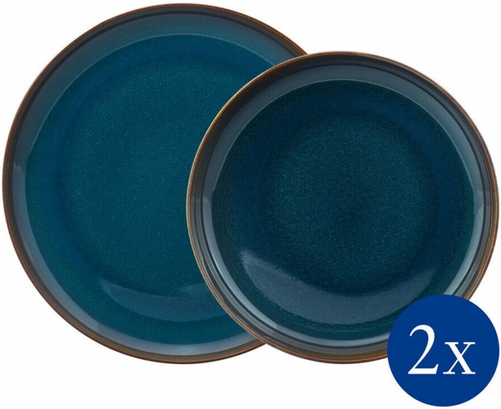 Jídelní sada talířů o 4 ks z kolekce Crafted Denim německé značky Villeroy & Boch byla vyrobena z prémiového porcelánuv originálním rustikálním designu, který připomíná kameninu.Balení obsahuje:2x jídelní talíř, Ø 25,9 cm2x hluboký talíř, Ø 21,9 cmDíky aplikaci reaktivní glazury, u níž dochází k míchání různých barevných pigmentů, se po vypálení projevuje barva na každém kousku nádobí různě, v tro...