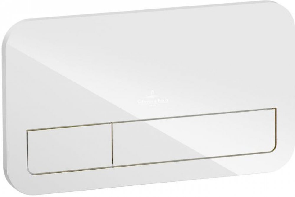 Ovládací tlačítko pro WC, barva sklo Glossy White, povrch z kvalitního bezpečnostního skla, s dvojím dávkováním vody, rozměry 26,9x16,1x1,3 cm, rámeček ovládacích tlačítek, osazovací rámeček a upevňovací čepy 922400RE, 922400RE_VB