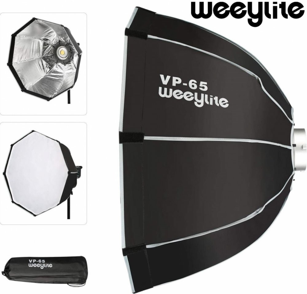Softbox pro LED reflektor Viltrox Weeylite Ninja 400 (a další s bajonetem Bowens např. Sokani x60/Godox SL-60W VL150/Aputure 1202). Průměr 65 cm, hloubka 41 cm. Balení obsahuje přepravní brašnu.