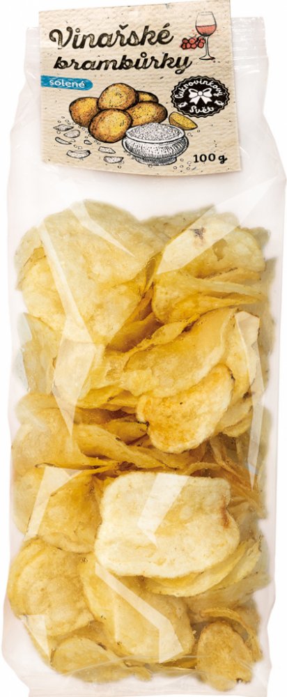 Vinařské brambůrky vyráběné z prvotřídních brambor, s velkým podílem ruční práce. S maximální snahou o udržení nejvyšší kvality. Základními surovinami při jejich výrobě jsou pečlivě vybrané odrůdy brambor. Jejich unikátní chuť si vychutnáte nejen se sklenicí dobrého vína.