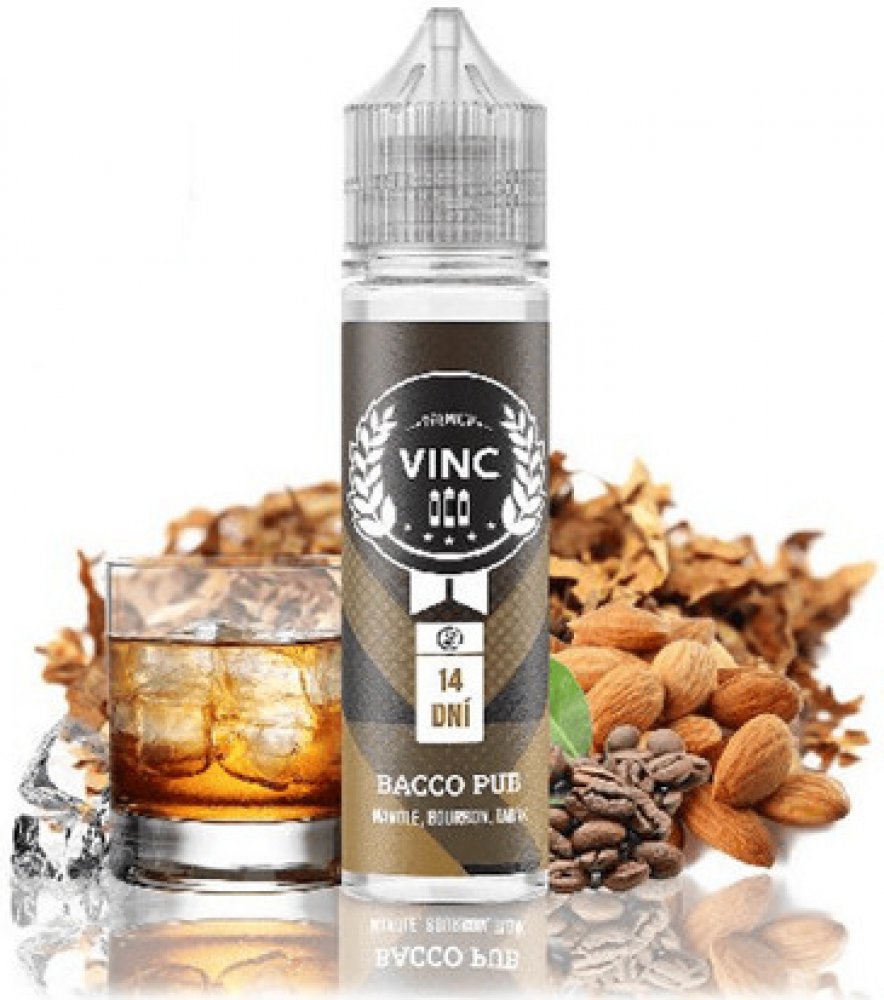 Postup přípravy e-liquidu VINC: Do 60 ml lahvičky s příchutí dolijte bázi. Lahvičku důkladně protřepejte. Poté můžete ihned vapovat díky systému Shake & Vape. Doporučená doba zrání u příchutě Bacco Pub pro zisk co nejlepšího chuťového profilu činí 14 dní. Pro míchání doporučujeme především báze s vyšším podílem VG (rostlinný glycerol), nejlépe 70% - 80% VG. Použít však můžete také klasické báze 50/50, nebo báze s vyšším podílem PG.