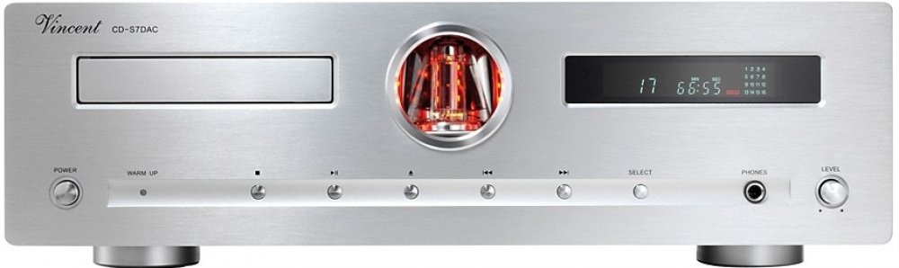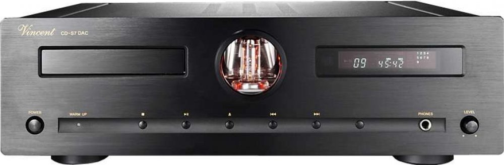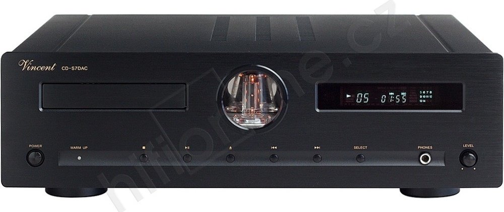 "Hybridní CD přehrávač Vincent CD S7 DAC je vybaven externími digitálními vstupy přímo do převodníku, takže jej můžete využívat jako špičkový 24Bit / 192kHz DA převodník, vybavený symetrickým elektronkovým výstupem XLR. I když přehrávač vychází vizuálně z velmi oblíbeného modelu CD S6mk, byla jeho koncepce s ohledem na technologický rozvoj zcela přepracována. Nově použitá CD mechanika Sanyo DA11 se zcela novým řídícím servem, zajišťuje klidné a přesné načítání dat. Pro zcela čisté napájecí napětí, byly i ve zdrojové části usměrňovacích obvodů použity elektronky 6Z4 a 12AX7. Digitální část je nově osazena převodníkem Burr Brown PCM 1796-DAC, do kterého je nyní přístup z externích zdrojů digitálního signálu. Analogová, symetrická signálová cesta je v čisté třídě ""A"" a je navržena tak, aby byl zaručen lineární a dynamický zvuk i do nízké