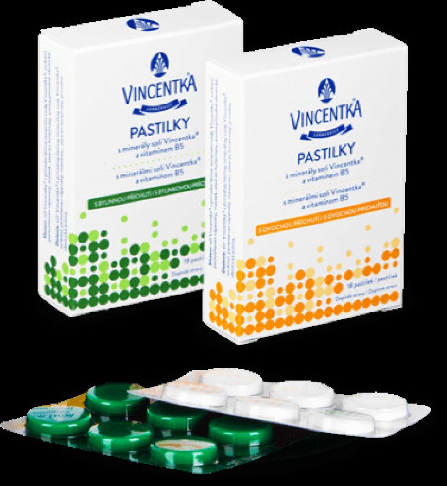 Vincentka pastilky s ovocnou nebo bylinnou příchutí je doplňkem stravy. Určeno pro péči o sliznici dutiny ústní a nosohltanu. Produkt z minerální vody Vincentka z přírodního léčivého zdroje.