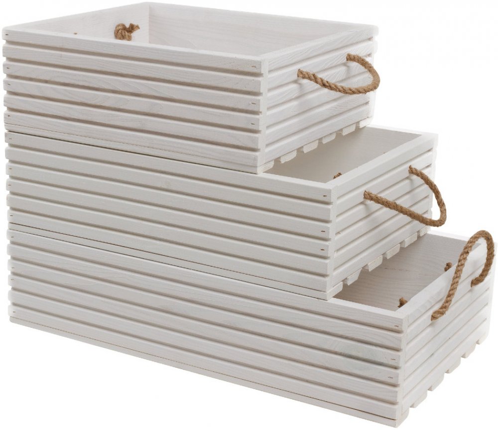 Vingo Dřevěná bedýnka s lanovými uchy 50 x 35 v. 14,5 bílá