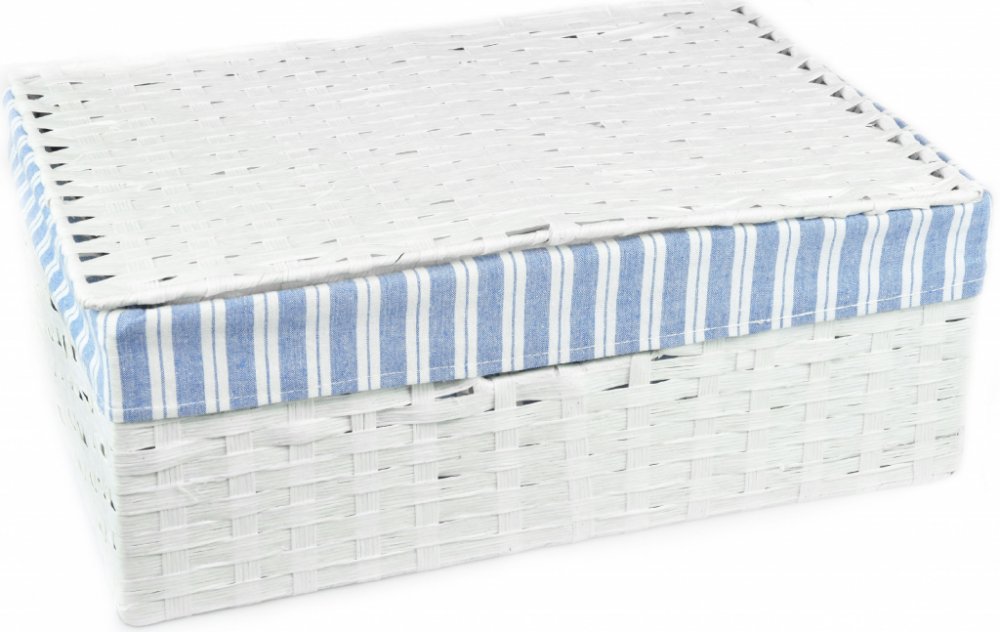 S pratelnou látkou: Uvnitř bedny je modrobílá pruh...