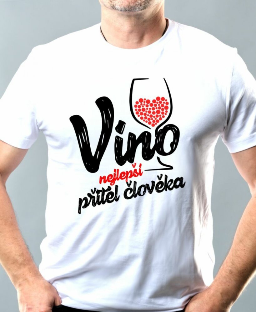 Víno, nejlepší přítel člověka - černý potisk. Trička s potiskem víno, trika s motivem vína, která potěší každého a každou vínopičku :).Tričko, mikina, kšiltovka, zástěra, tílko, hrnek, půllitr, plechový hrneček.