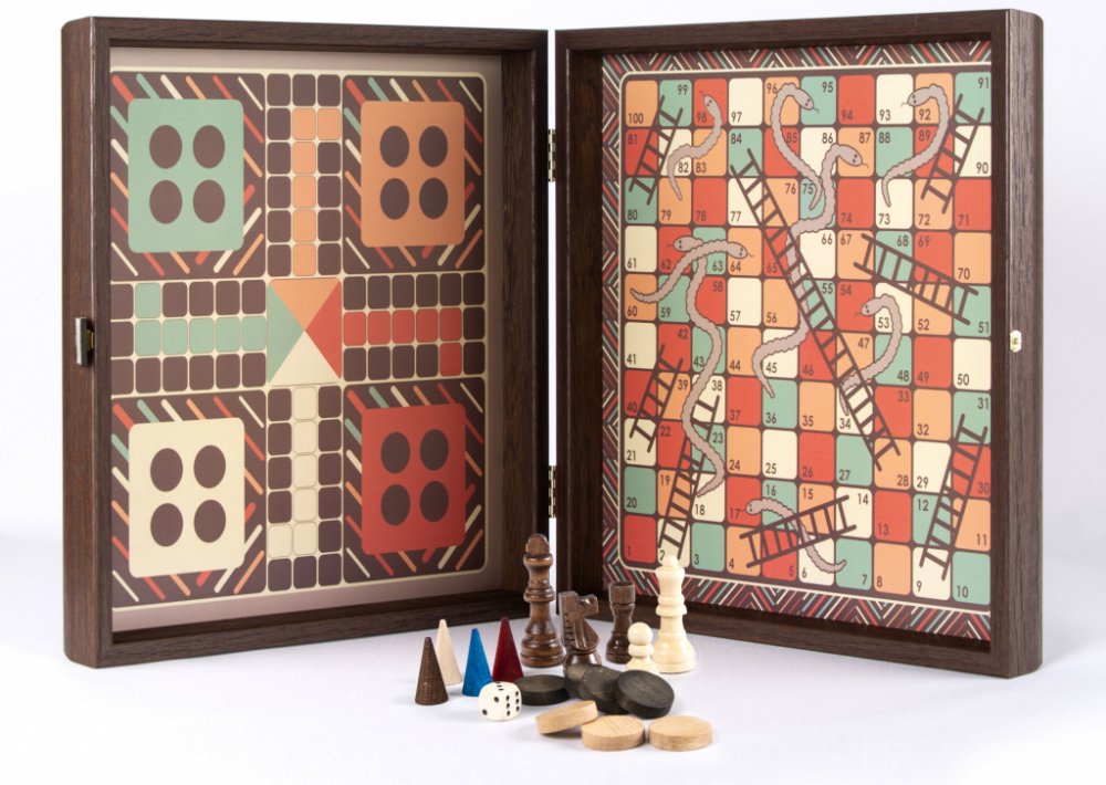 Užijte si čtyři klasické hry v jedné sadě: šachy, backgammon, ludo a hady, které poskytují nekonečnou zábavu a rozmanitost pro herní večery.