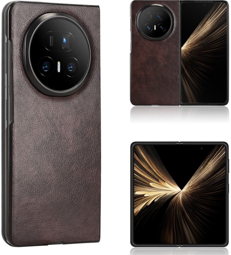 Vintages plastové pouzdro s umělou kůží na Honor Magic V5 - hnědé