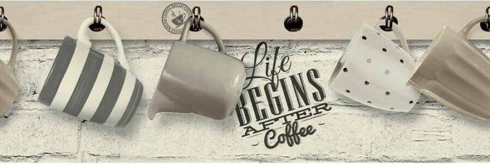 Vinylové bordury na zeď L73691, rozměr 17,6 cm x 5 m, hrníčky, Ugépa