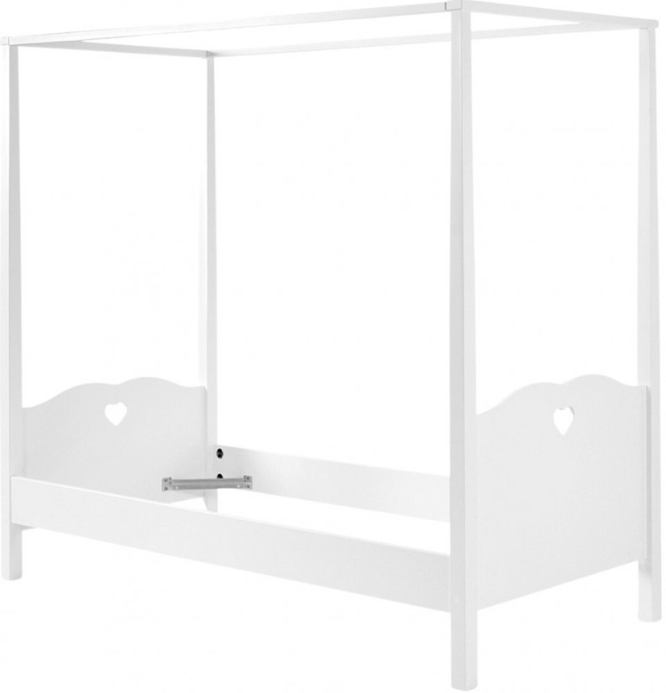 Tímto jedinečným kusem nábytku z kolekce Amori můžete vyšperkovat romantický dívčí pokoj. Jednolůžková postel s nebesy je vyrobena z bíle lakovaného MDF. Jednoduchá konstrukce a čistý bílý design jistě zaujme i milovníky minimalismu a moderních interiérů. Na čele a zadní straně postele zaujmou výřezy ve tvaru srdíček, které celému kousku dodají na atraktivitě a originalitě. Součástí postele jsou n...