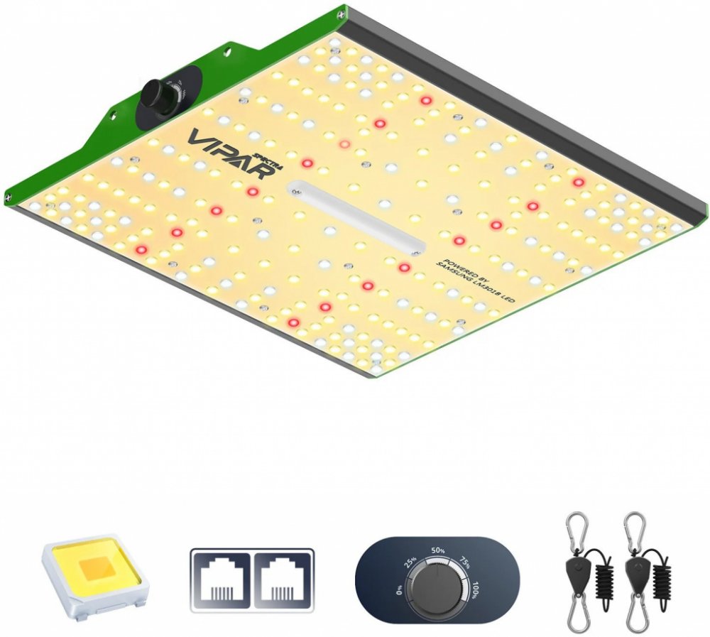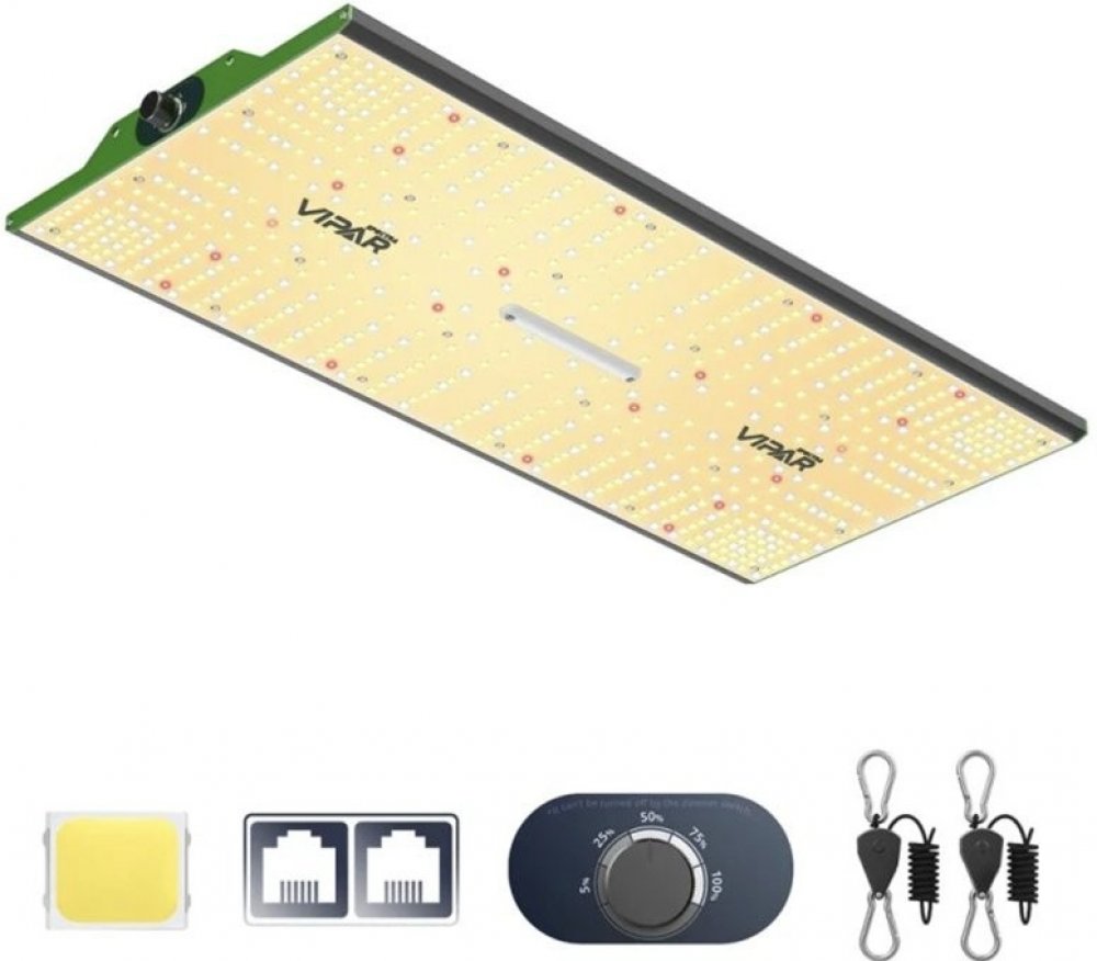 Představujeme vám světlo ViparSpectra PRO 1000/100W, LED panely jsou ve stylu QB s vysokým výkonem, tato řada zlepšuje výnos rostlin a má vysoké PPE. Využívá LED čipy Samsung LM301B. Tento model umožňuje propojení až 20 svítidel pomocí funkce daisy chain. Produkt má spotřebu 100W a životnost až 100 000 hodin. Dále má produkt vestavěný stmívač. Provoz produktu je zcela tichý. Produkt je pasivně chlazen větším povrchovým chladičem z kvalitního hliníku.