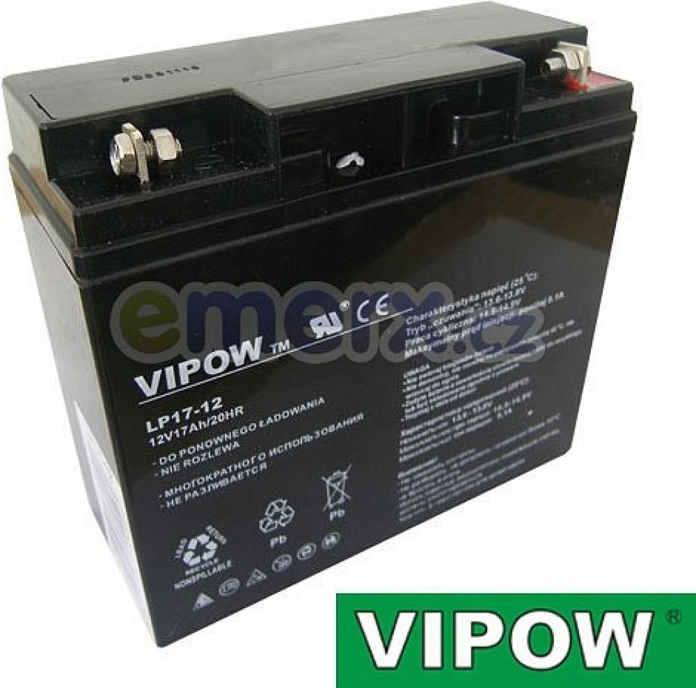Baterie olověná 12V/17Ah VIPOW bezúdržbový akumulátor